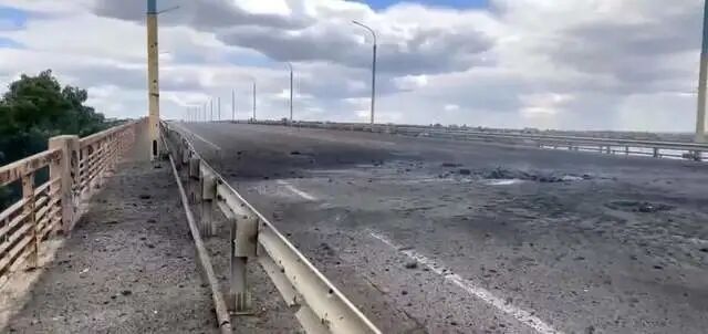 据称该桥被11枚火箭弹击中,俄方任命的赫尔松地区军民局副局长基里尔·斯特雷穆索夫表示,安东诺夫大桥实际上已经被摧毁了,他说