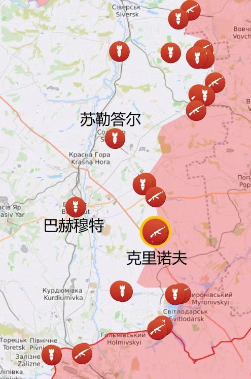 巴赫穆特城在塞弗尔斯克以南10多公里,是北顿巴斯地区乌军的物流枢纽,在此前的北顿涅茨克战役中,这里一直是乌军调度军事物资的基地,乌军在此部署了重兵把守。