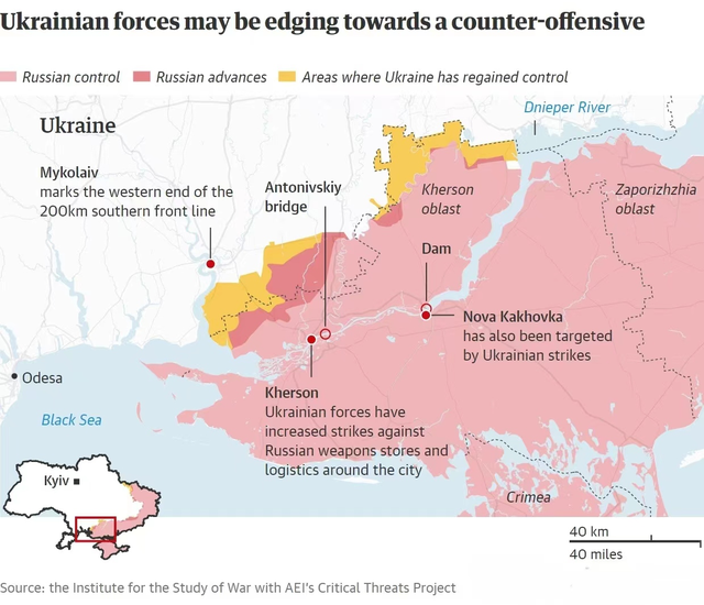 自从6月开始反攻赫尔松以来,乌军一直在稳步推进,挤压俄军的防线。