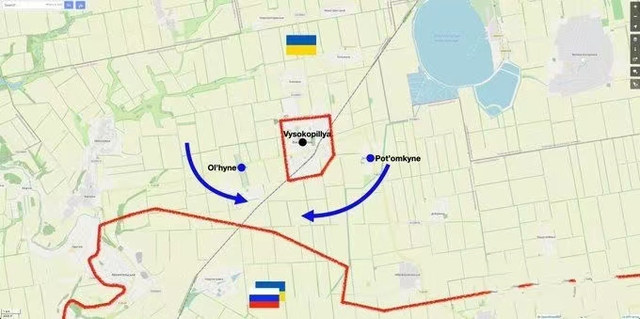 其中的一路已经推进到了维索科波利耶镇(vysokopillya,见下图红框处),根据最新消息,那里的2000俄军来不及撤退,被乌军包了饺子。