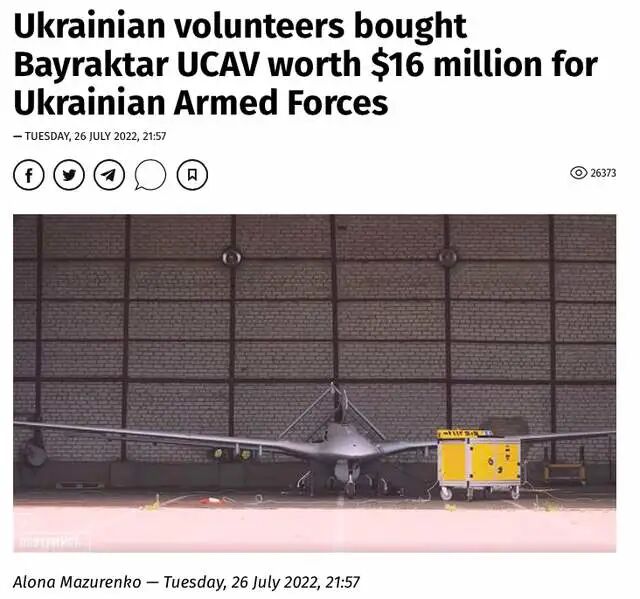 据报道,一个名为“活着回来“(Come Back Alive)的基金会(非政府组织),为乌克兰购买了Bayraktar TB2 无人机,总共花费为1650万零2450美元。