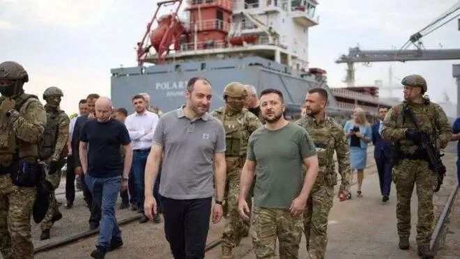 7月29日,乌克兰总统泽连斯基亲临敖德萨港,视察粮食出口情况,并接受了记者的采访。