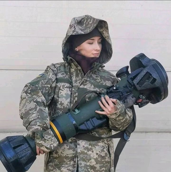 乌克兰女兵Daria Borysenko和她怀中的NLAW反坦克导弹。