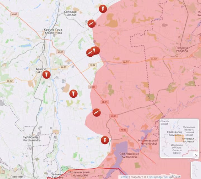 东路之俄军,从Pokrovske镇区出发,持续向巴赫穆特方向发起进攻。