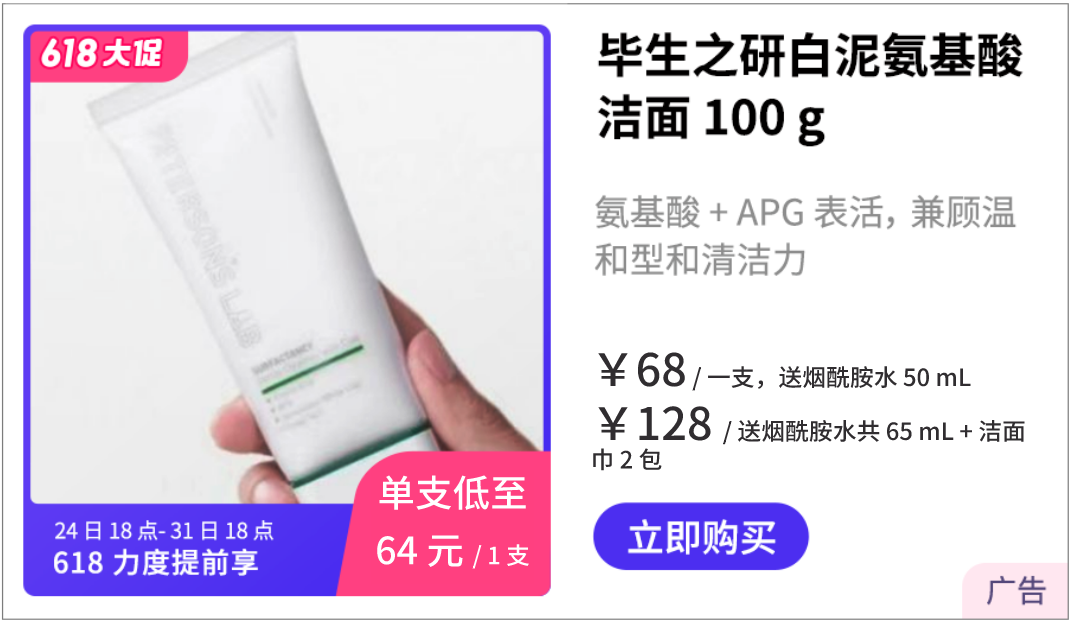 它主打氨基酸和 APG 复合表活配方,配合上亚马逊白泥,更深入、更强效地吸附掉皮肤表面的脏东西。