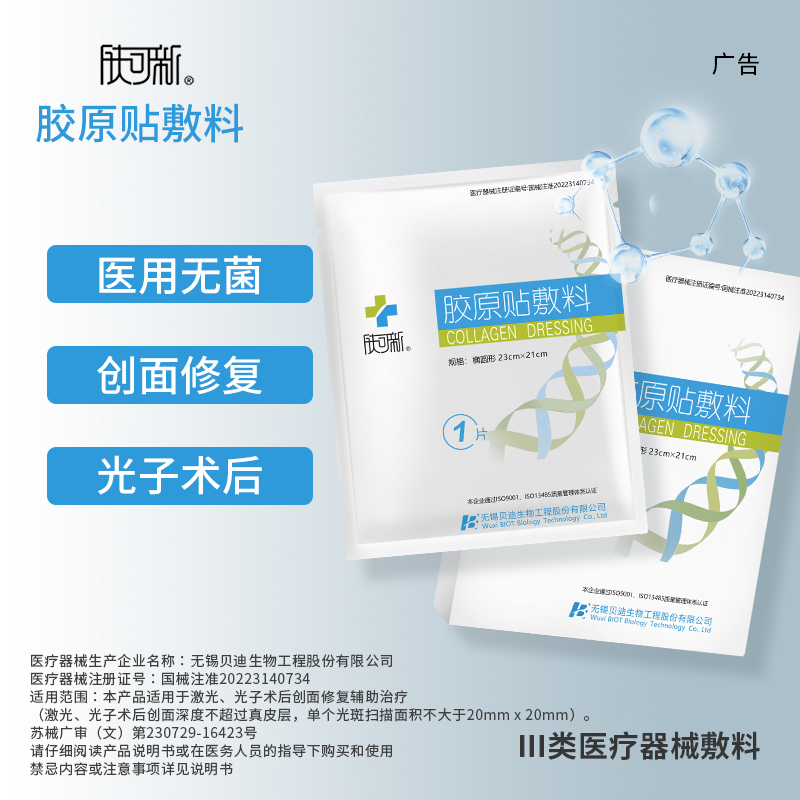 作为医用敷料的新秀产品,一登场就带着「稀少」的三类医疗器械头衔,添加的是动物源胶原蛋白(天然胶原蛋白)。