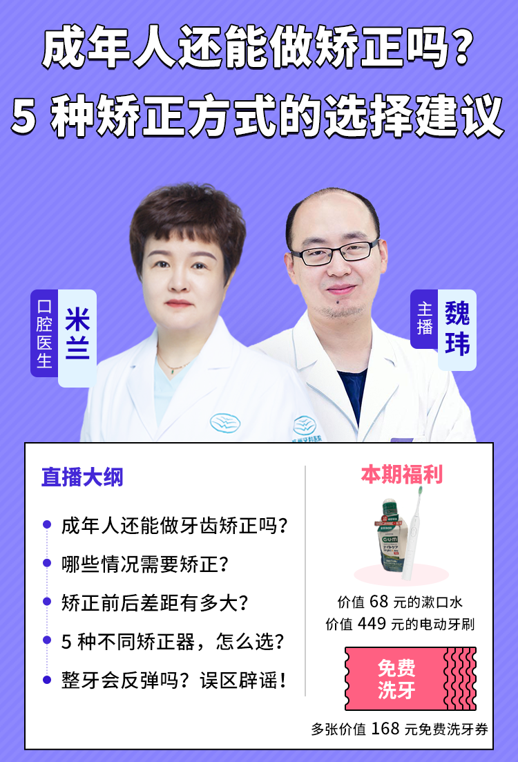 今晚直播,魏玮医生将和口腔科主任医师 米兰一起跟大家聊聊牙齿矫正的话题,点击提前预约!