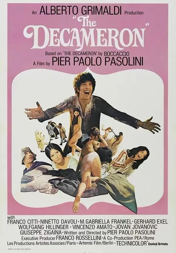 在他生命的最后几年里,他的电影创作完全转向从古老的史诗中发现诗体戏剧。帕索里尼把看似不相干的《十日谈》《坎特伯雷故事集》和《一千零一夜》组合成“生命三部曲”,他沉浸于在传统文学作品中寻找“生命感”。这位痛苦的诗人试图从“蕴含了过去与当下”的文学经典里,打捞他的世界里已经失落的生命力量,这力量最终指向肉体的存在意义——一种激烈、昂扬、愉悦的欲望。这欲望是风格化的,也是净化的,这欲望驱驰着命运不断陡转,生命的大河奔流,最终汇入日常的平静海。