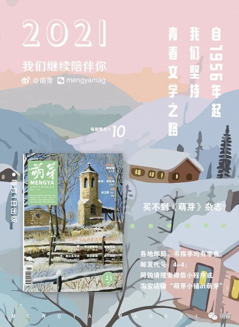 2020“上海-台北两岸文学营”专辑精彩继续;连载《虫之履》迎来第六章!各地邮局、报刊亭均有零售;邮局订阅邮发代号:4-4;网购请搜索微信小程序或淘宝店铺“萌芽小铺at萌芽”。
