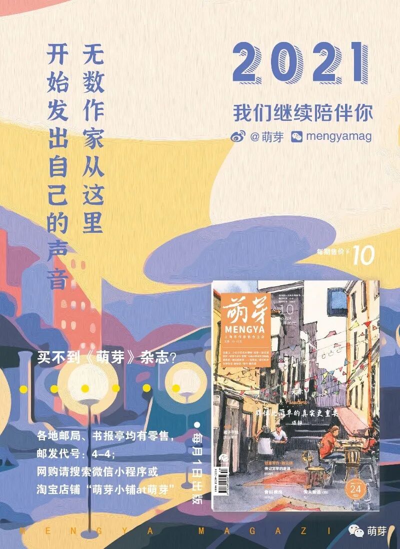 华东师范大学中国创意写作研究院副院长项静畅谈创意写作专业的教学及文学写作的经验;连载《失人絮语》迎来第四章!各地邮局、报刊亭均有零售;邮局订阅邮发代号:4-4;网购请搜索微信小程序或淘宝店铺“萌芽小铺at萌芽”。