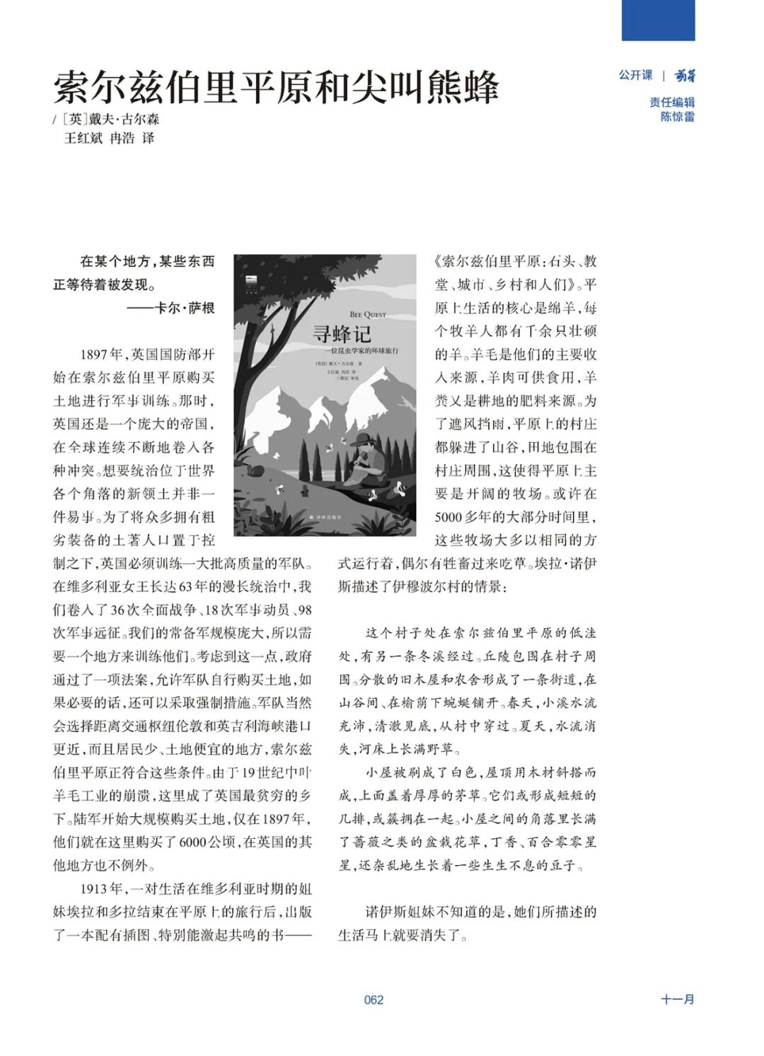 自1897年开始,英国国防部开始在索尔兹伯里平原购买土地,无意间创造了一块巨大的、未经官方批准的自然保护区。英国生物学教授戴夫·古尔森通过讲述自己在索尔兹伯里平原寻找熊蜂的稀有物种的经历,探寻人类活动对自然环境的影响。