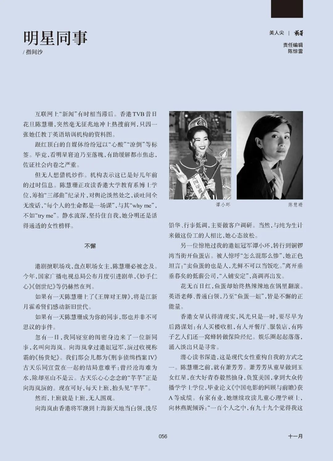 从昔日TVB花旦到教育学博士,从港姐冠军到当街卖鱼蛋,从少女偶像到精英律师……这批香港昔日最红的女星们,曾以其现代、时髦、强大的形象撑起港剧港影的全盛时代,成为一代人的情怀所系。而当娱乐圈更新换代,港女们又以平和的心态,在娱乐圈之外的世界任择心意,放胆一试。