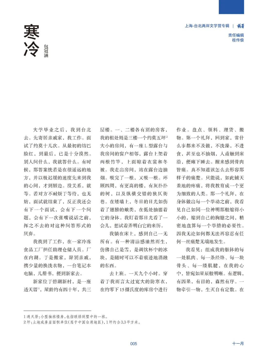 大学毕业后,我在台北的一家冷冻食品工厂担任助理仓储人员。日复一日地,我和搭档庆仁哥穿着防寒衣走进零下15摄氏度的库房。庆仁哥告诉我,没人可以习惯这种寒冷。共事了一段时间后,我发现,他无时无刻不在为了自己对女儿的爱所深深受苦。一天,他向我讲起了他关于女儿的困惑……