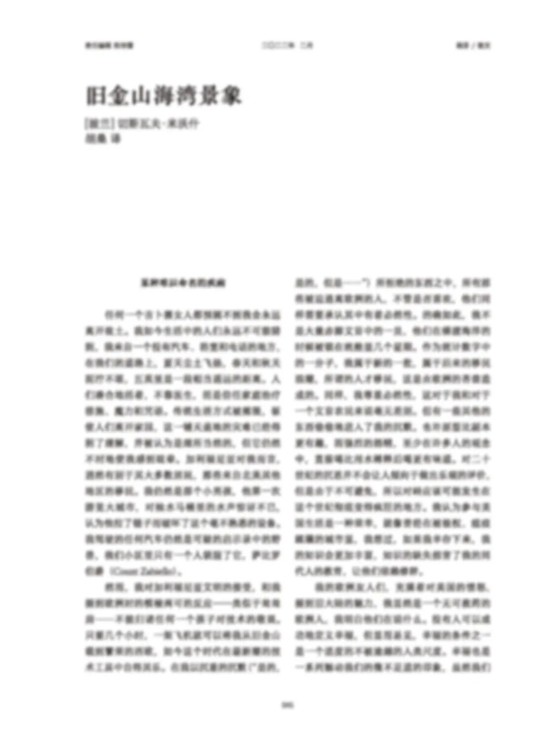 切斯瓦夫·米沃什于1980年获得诺贝尔文学奖,“他在自己的全部创作中,以毫不妥协的深刻性揭示了人在充满着剧烈矛盾的世界上所遇到的威胁”。这里摘选了米沃什散文集《旧金山海湾景象》中的三篇,作者在其中谈及离开故土移居美国的种种感触,以及大自然与人类文明之间神秘的意义与联结。