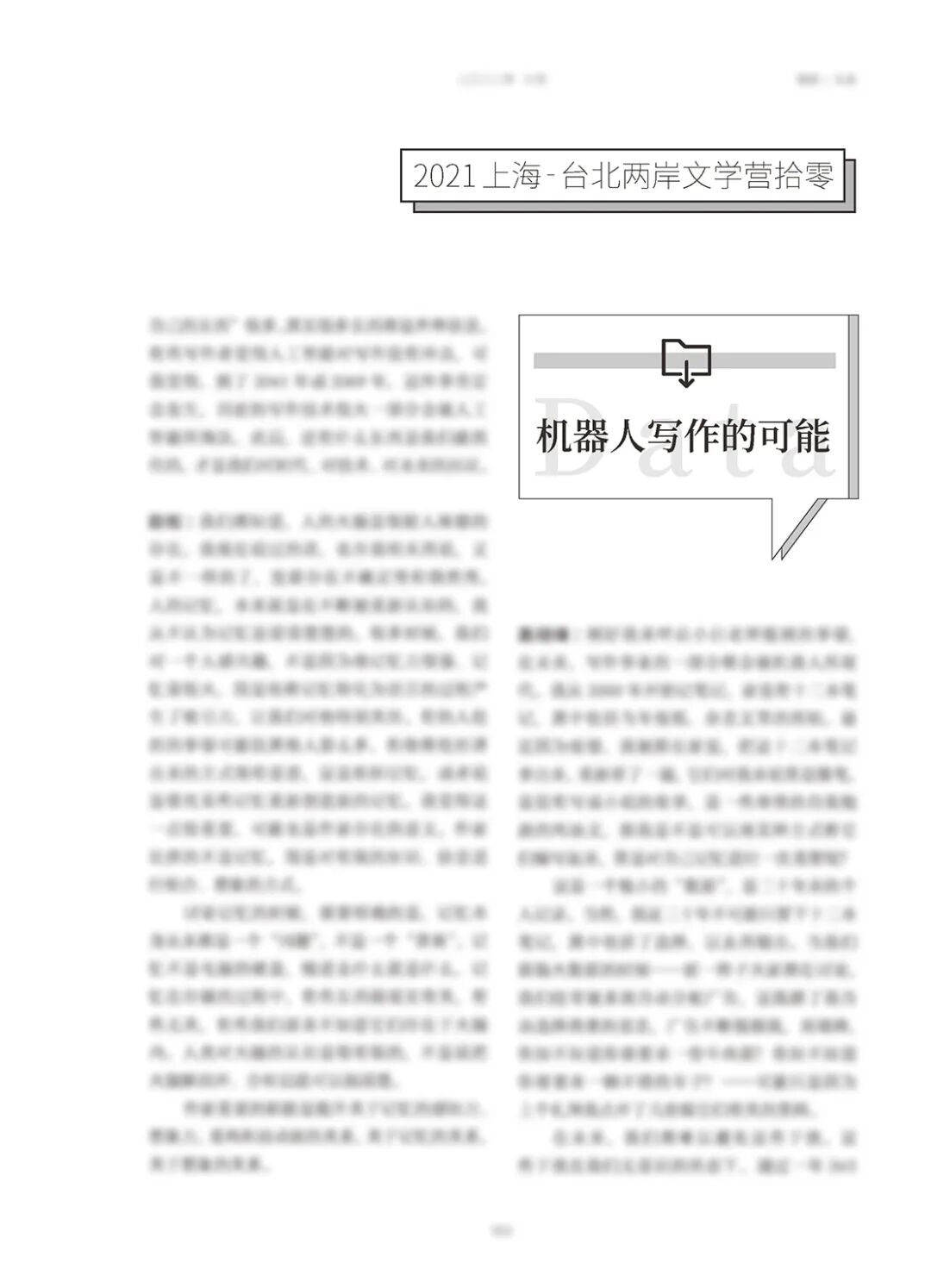 在2021上海-台北两岸文学营上,来自上海和台北的导师们交流了文学与时代、与记忆、与AI、与历史的多重关系与种种构想:在写作的劳动中,记忆是以何种机制发挥着作用?机器写作在未来能否取代人类的文学创作?在书写历史的时候,写作者又能够从缝隙中再造出哪些可能?