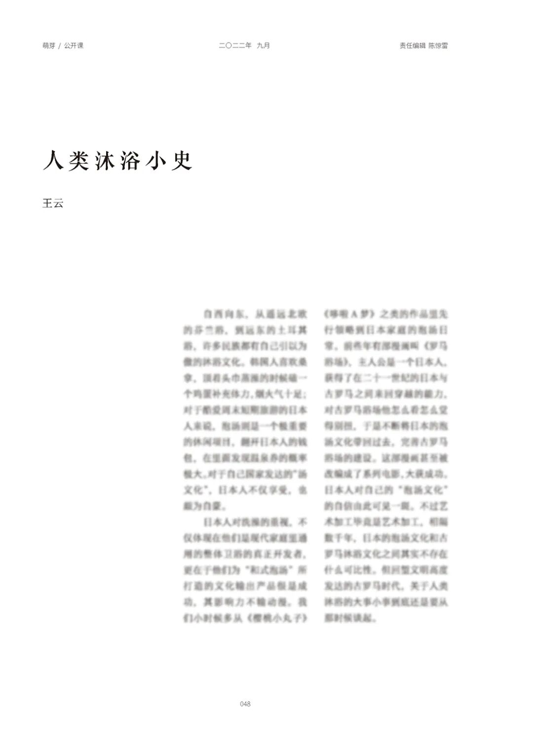 从《荷马史诗》中阿伽门农的陶土浴盆、罗马帝国奢华的卡拉卡拉大浴场、土耳其蒸汽浴,到鼠疫蔓延后的两百年禁浴时光,再到为治疗霍乱研发的淋浴疗法,沐浴这件事在欧洲经历了漫长的发展。在中国古代,“洗三”礼仪象征着国人的重“生”情结。而从瓮堂到混堂,从简陋的公共浴室到功能一应俱全的洗浴城,再从浴缸到淋浴,澡堂的进化史不仅反映了洗浴模式的变化,更折射出中国人生活状态的嬗变。