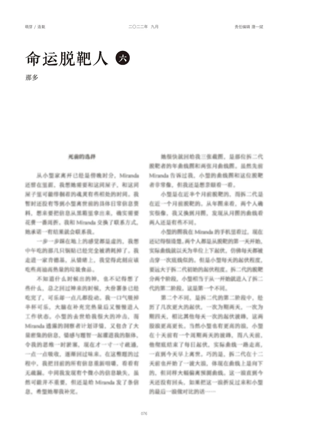 想要把小望离世前的具体资料从黑箱里拿出来,还需要一番周折。Miranda先前告诉过我,小望的曲线图和一位拆二代脱靶者非常像,在亲眼看到这位拆二代的三张曲线图后,我感到心脏重重一跳。我迅速拨通了Miranda的电话……