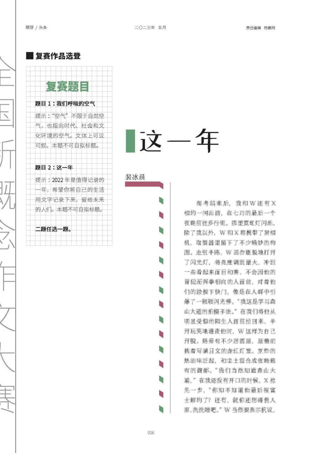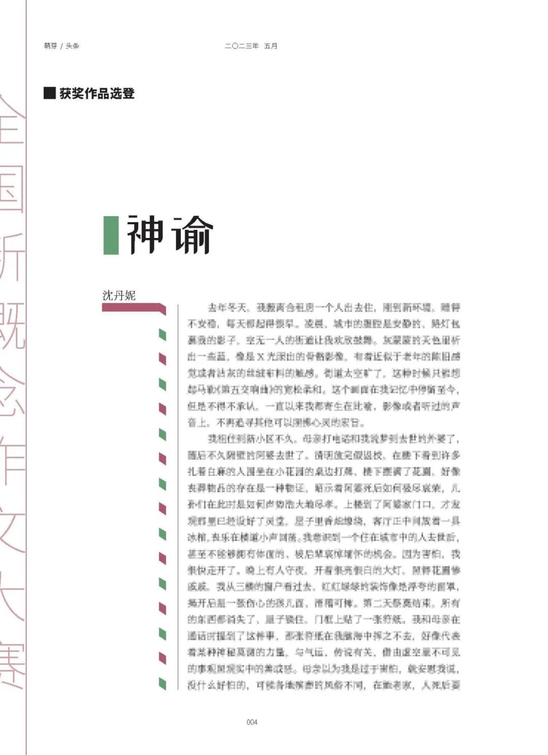“新闻晨报·周到”杯第二十五届全国新概念作文大赛获奖作品选登