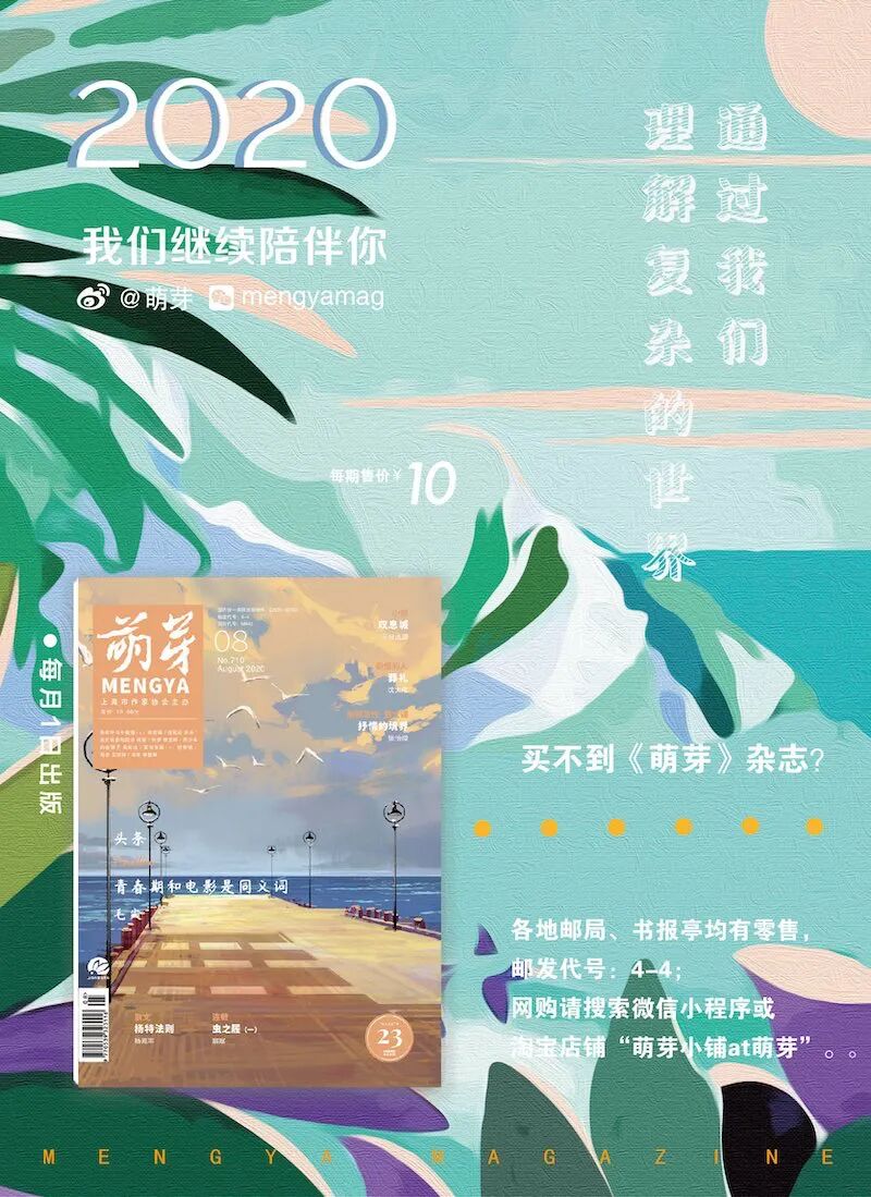 著名作家、影评人毛尖做客畅谈迷影历程;察察长篇小说《虫之履》连载开启!各地邮局、报刊亭均有零售;邮局订阅邮发代号:4-4;网购请搜索微信小程序或淘宝店铺“萌芽小铺at萌芽”。