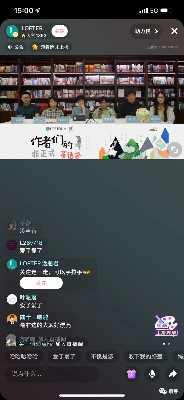 7月15日15:00,《萌芽》杂志社与LOFTER联合举办了一场作者茶话会,活动以线下沙龙与线上直播的形式展开。《萌芽》杂志编辑部主任桂传俍、作家王若虚、作家不日远游、作家负二、LOFTER写手狮心与子夜旦未央参与了本次活动。