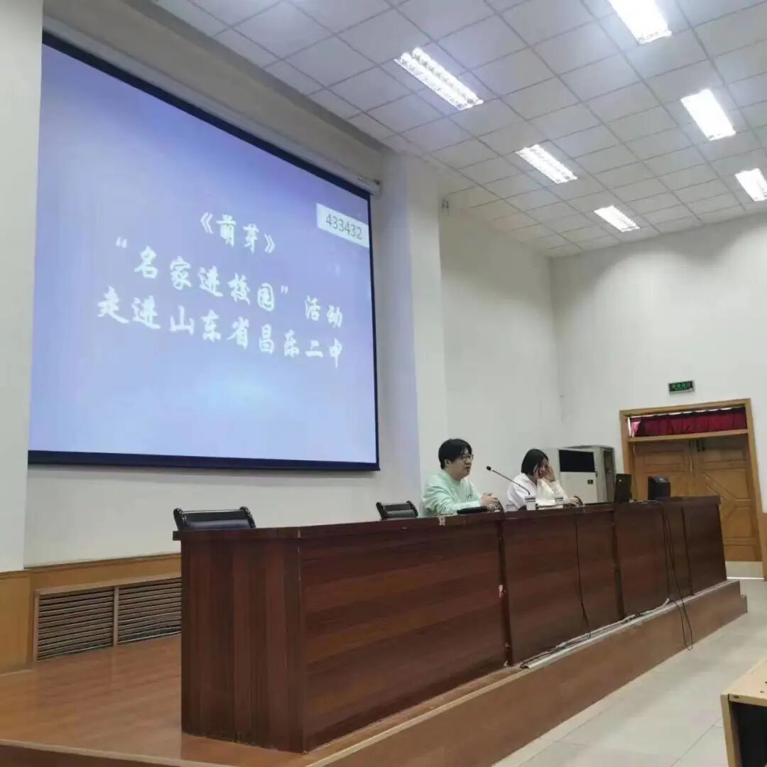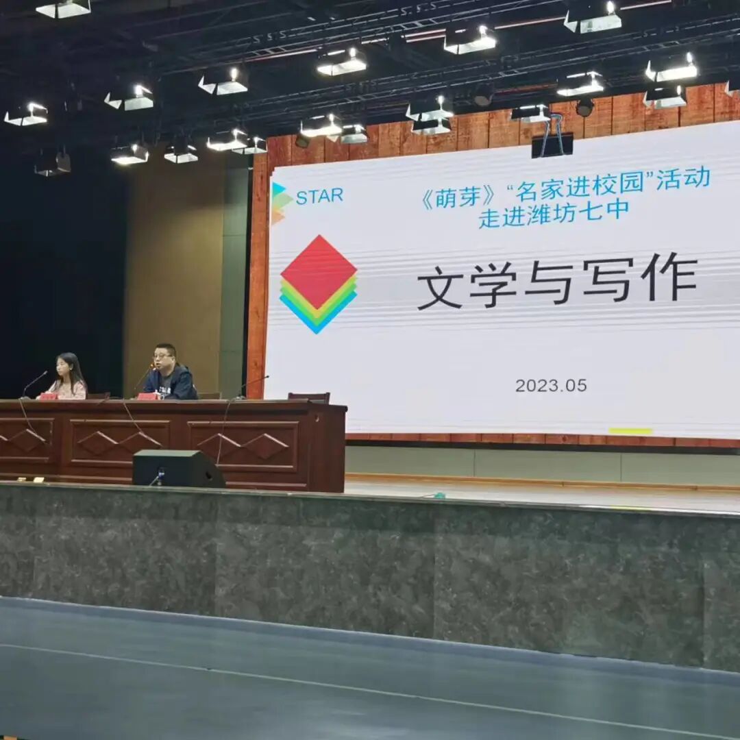 最后在潍坊第七中学,有个男生以去年在《萌芽》刊发的小说《洄游》为例,联系王安忆的创作与卡夫卡等作家,询问如何看待当下的都市书写和乡土创作、它们这些年的变迁,以及西方小说的发展,和自己在写小说时遇到的各种问题。他显然对《萌芽》有所了解,并有一定的文学阅读量。结束后,这位同学找到了我们所在的会议室,他果然也在尝试写自己的小说,并有向杂志投稿的打算。唐老师自然乐意帮助有这样想法的学生,直到离开的汽车发动,他们都一直在楼梯间进行交谈。