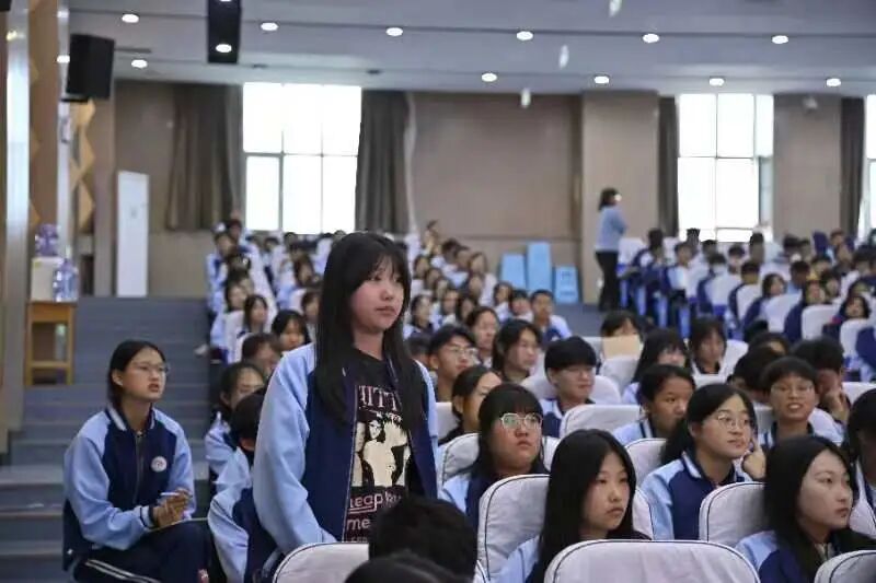 在前往昌乐二中的车上,一位语文老师已经率先向桂老师请教:他还比较年轻,工作没几年,不知道该怎么让孩子们爱上阅读。他观察到,现在小孩都比较爱看短视频,对阅读似乎提不起兴趣。平常在杂志社,也能听到编辑老师们发出类似的感叹,大家难免暗含忧虑,这一次却让我们心怀希望——校园里仍有人愿意为之努力。后来的讲座中,同学们也非常活跃,能听到他们细微积极的讨论声,这让大家愈加轻松愉快起来。