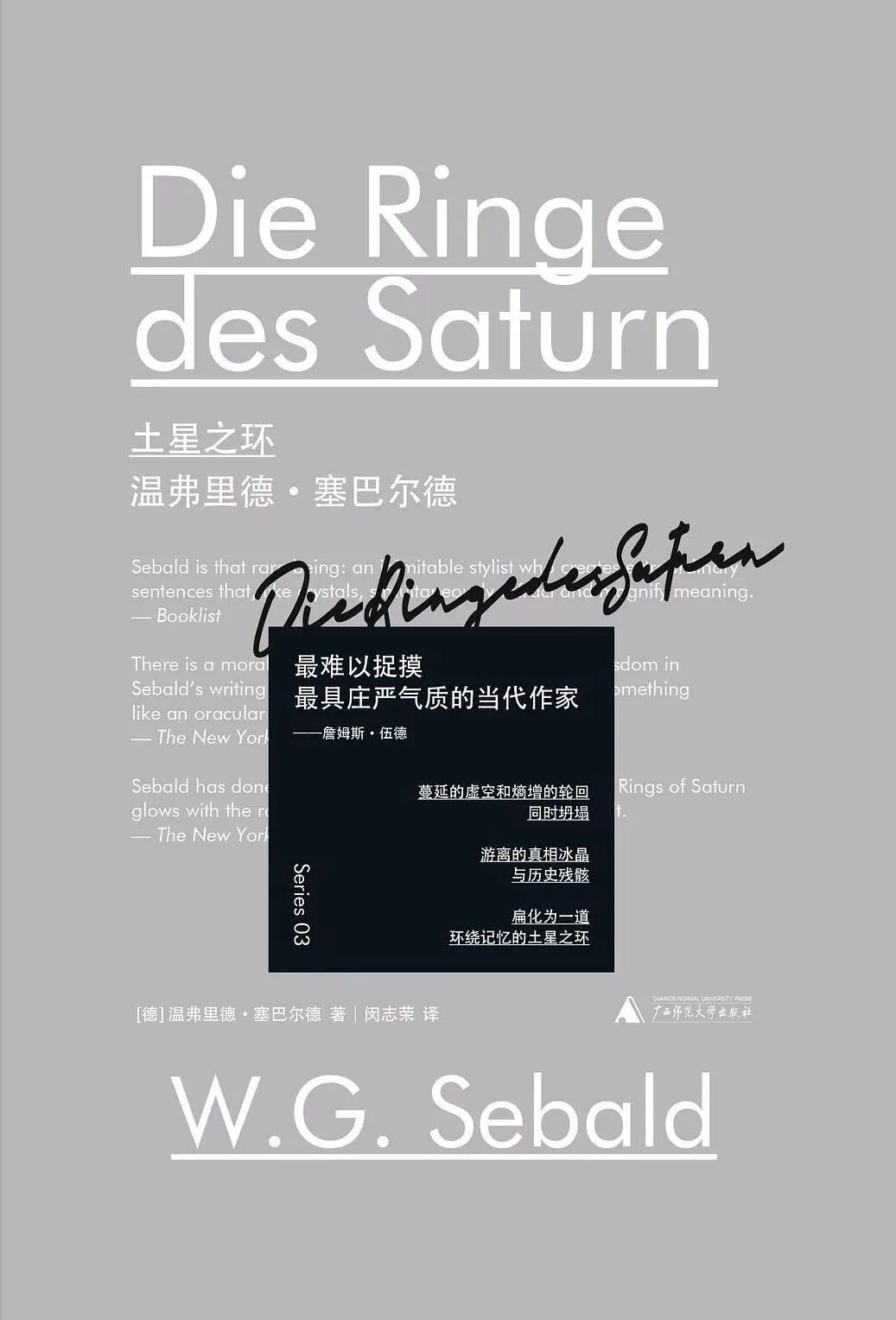 对这本书自由出入于虚实之间的写法,《纽约客》评论道:“这与温弗里德·塞巴尔德与奥尔加·托尔卡丘克的作品一脉相承:重构人物的传记,并且冒险进入想象的领域。”塞巴尔德是二十世纪的德国作家,代表作有《移民》《眩晕》《土星之环》《奥斯特利茨》,他常在文字间插入照片,在讲述时将虚构故事、真实的历史事件、个人经历与回忆录融为一体。以《土星之环》为例,书中既有自己在英国东海岸萨福克郡地区徒步旅行中的所见所感,也有对约瑟夫·康拉德、夏多布里昂、爱德华·菲茨杰拉德、托马斯·布朗等历史名人生平经历的梳理和想象,还记录和反思了许多历史事件,比如“二战”盟军对德国城市的轰炸、北爱尔兰独立运动、比利时对刚果的殖民掠夺,是比《当我们不再理解世界》更加复杂的混合物。不过,在叙述风格上,塞巴尔德的文字像大理石一样庄严平实、严谨繁复,即使在讲述康拉德青年时十余年的海上冒险经历时,也语调平静,不像《当我们不再理解世界》那样有强烈的情感渲染和戏剧化倾向。此外,《土星之环》的基石部分还是塞巴尔德的旅行经历,所以在讲述时作家本人一直在场,他还会探寻自己和这些历史人物之间的交织和关联,《当我们不再理解世界》则完全是这些科学家的舞台。如果说塞巴尔德的文字将来自过去与现在、自我与他者的种种不同的材料从容地调和在一起,拉巴图特的故事则像一片绮丽的彩雾,让我们不时感到一阵眩晕。