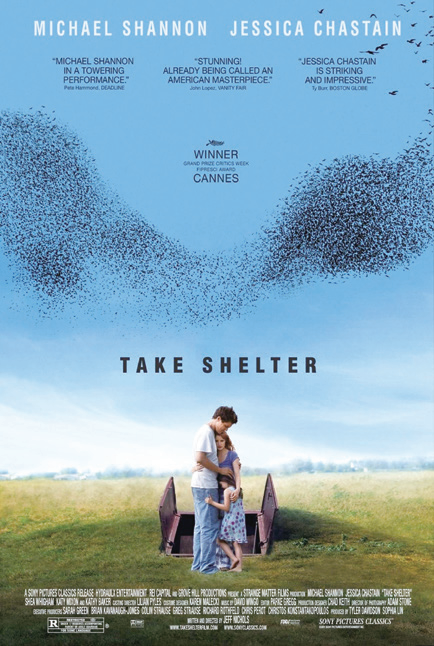 杰夫·尼克尔斯导演的《存身》用类似的手法编排故事,辛苦养家的父亲被接二连三的噩梦缠绕,梦中他看到一场吞噬一切的龙卷风。他一边咨询心理医生、翻查家族精神病史,一边动手修建地下掩体保护妻子女儿,最终男主角丢了工作,让全家陷入经济泥沼。在身边人看来,他不可理喻,但他究竟是精神病人,还是末日预言家,取决于他的“预感”是否会成真。导演利用观众对此类型电影积累起来的惯常思维来堆砌疑点和悬念,陈词滥调反倒成为攀石,最终达成故事的高潮。夏洛特·勒·邦曾表达过对《存身》的喜爱。