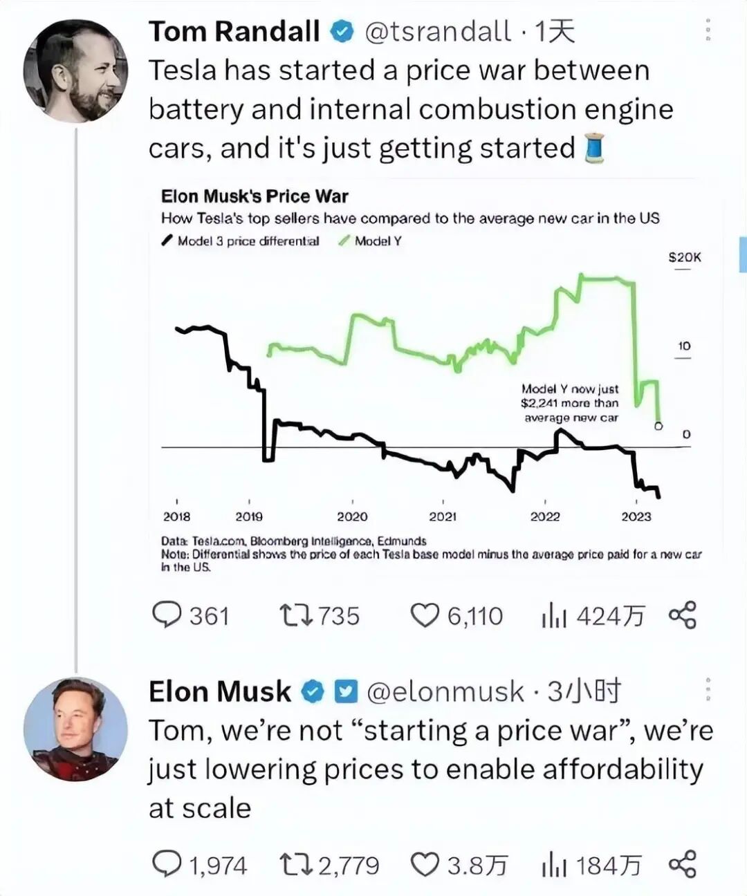 对此有分析认为,马斯克开启了一场针对电动车和燃油车的价格战。