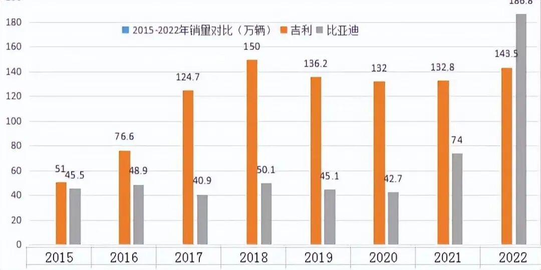 2022年是属于比亚迪的一年,年销量超过186万辆。“自主品牌一哥”的头衔由吉利传给了比亚迪。