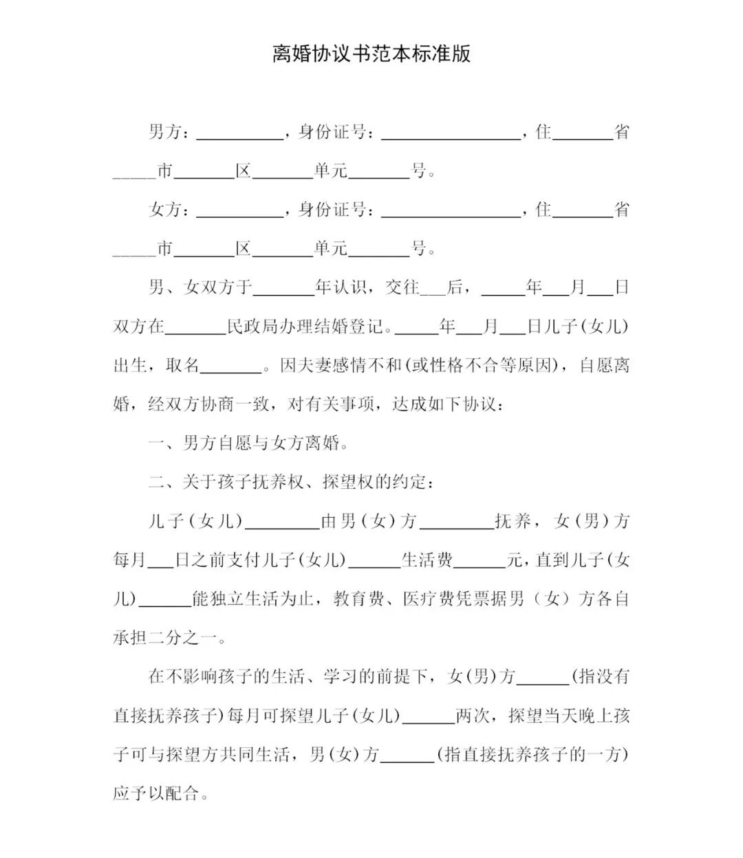 下面附上离婚协议书的范本供各位参考使用,可以收藏也可以分享给他人。