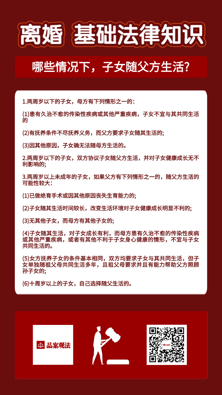 离婚基础法律知识:哪些情况下,子女随父方生活?
