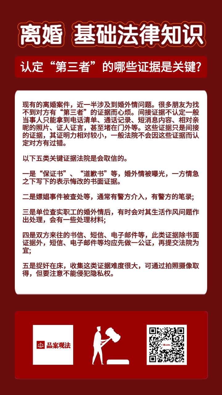 离婚基础法律知识:认定“第三者”的哪些证据是关键?