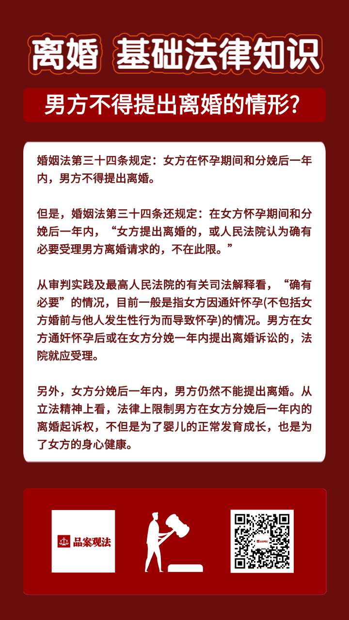 离婚基础法律知识:男方不得提出离婚的情形?