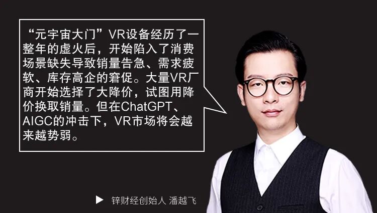 ChatGPT和AIGC这种看得见摸得着的技术,受到越来越多互联网巨头的青睐。而“元宇宙大门”VR,逐渐和同门师兄弟NFT、Web3一起,成为被后浪拍死的前浪。