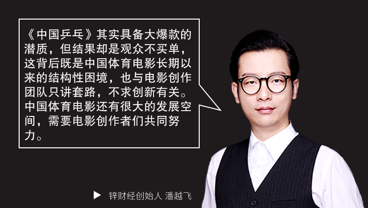 不止是《中国乒乓》一部电影的问题,纵观中国体育电影史,迄今为止也没出现票房和口碑都大爆的电影,这背后既是中国体育电影的结构性困局,也与电影创作者不求创新,落入叙事老套的窠臼息息相关。