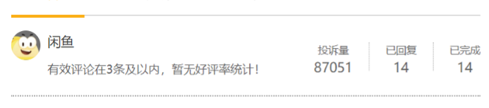 目前,在黑猫消费者平台上,关于闲鱼平台的投诉量已达到87021件,其中投诉缘由包括职业卖家太多、假货泛滥、货不对板、平台客服不作为。而闲鱼官方回复数仅为14件,解决14件。