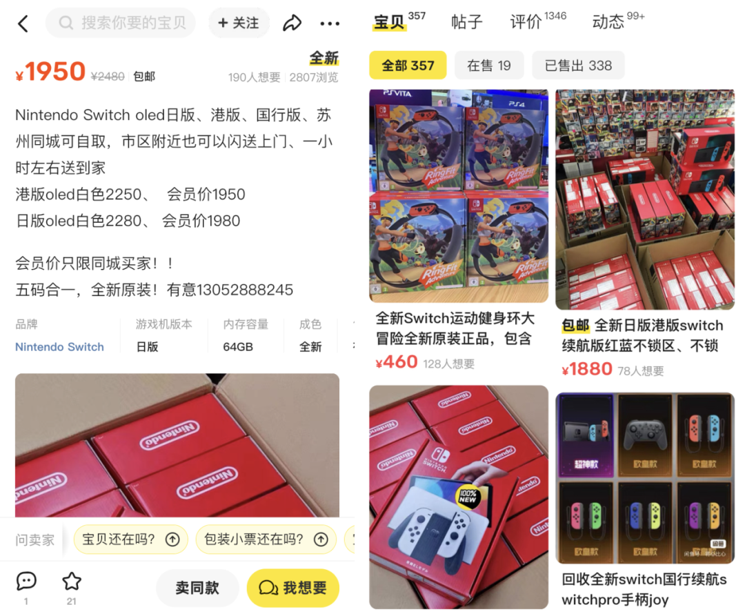 小林拿着闲置Switch lite,拍好照刚挂在闲鱼上,立马就有好多人来询问。而打开那些咨询者的闲鱼首页,全都是Switch的二道贩子。