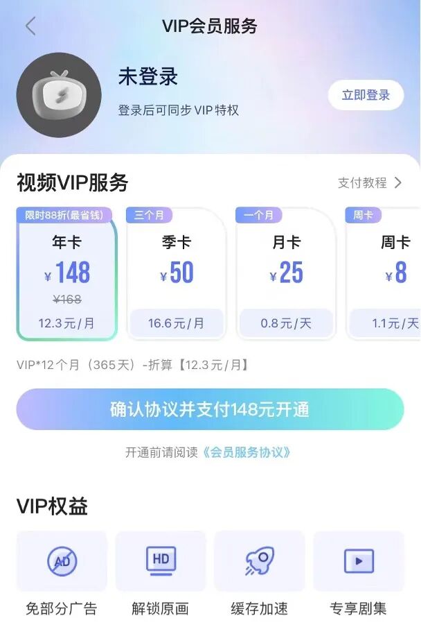 前两年,人人视频学着“爱优腾”,上线会员付费模式,试图向“广告+会员”的商业模式转型。目前,更名的“多多视频”VIP会员服务月卡为25元,季卡50元,年卡148元,VIP权益包括免部分广告、解锁原画、缓存加速、专享剧集等。