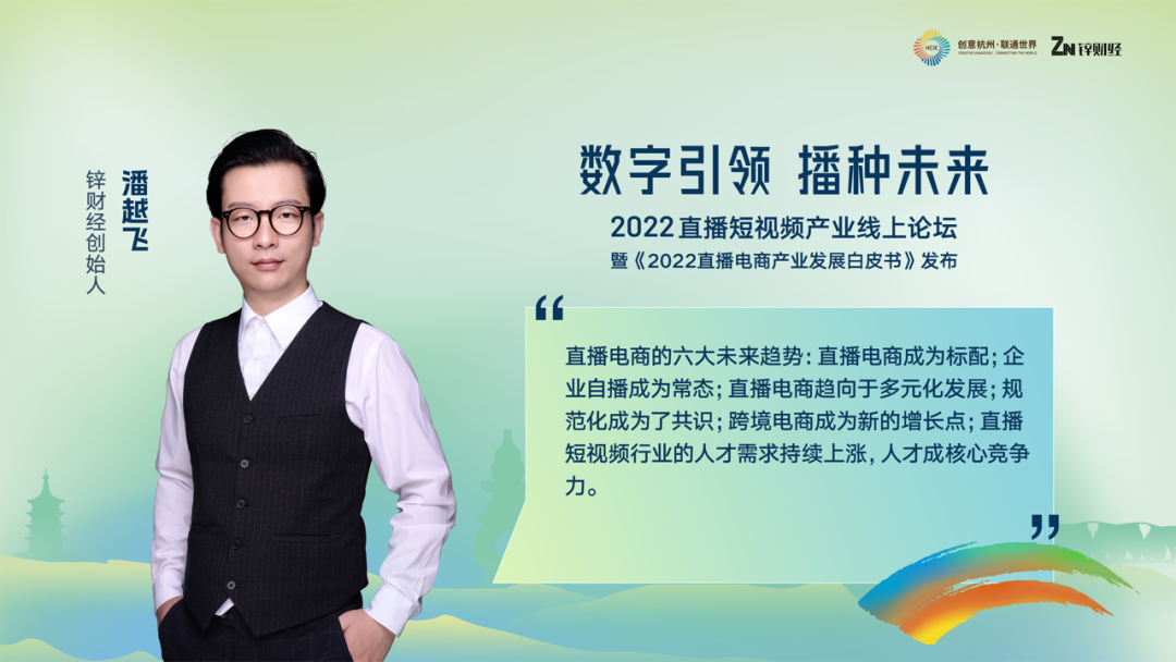 作为锌财经的创始人,潘越飞与大家分享锌财经和杭州文博会联合发布的一份《2022直播电商产业白皮书》。