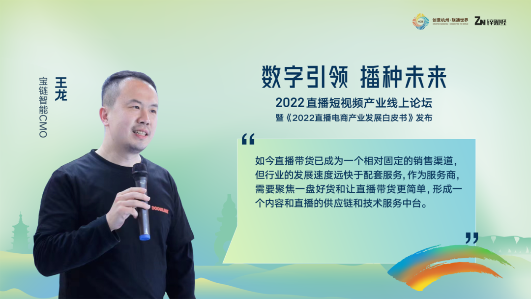 过去几年,直播电商规模一直处于持续高速增长态势,直播电商已经是一个万亿级的新零售赛道,宝链智能CMO王龙对此有话要说。他向大家分享的主题是,让直播更简单、更高效。