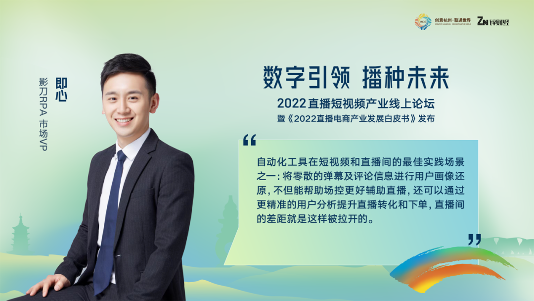 下一位嘉宾是影刀RPA市场VP即心,他分享的主题是直播电商的自动化未来之路。