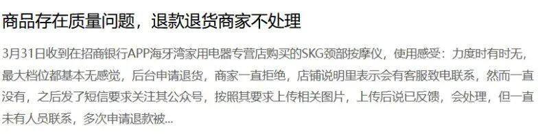 这是电商平台和社交媒体上,消费者最常问的问题。网红按摩仪已经进入中国市场多年,但对其质量和实际功效的争议却从来没停止过。在黑猫投诉平台上,SKG目前有101条投诉量,其中大部分与“产品有质量问题”“虚假宣传”有关;在倍轻松按摩仪的淘宝评论区里,也可见到许多消费者表示“没啥用”“挺鸡肋的”等言论。