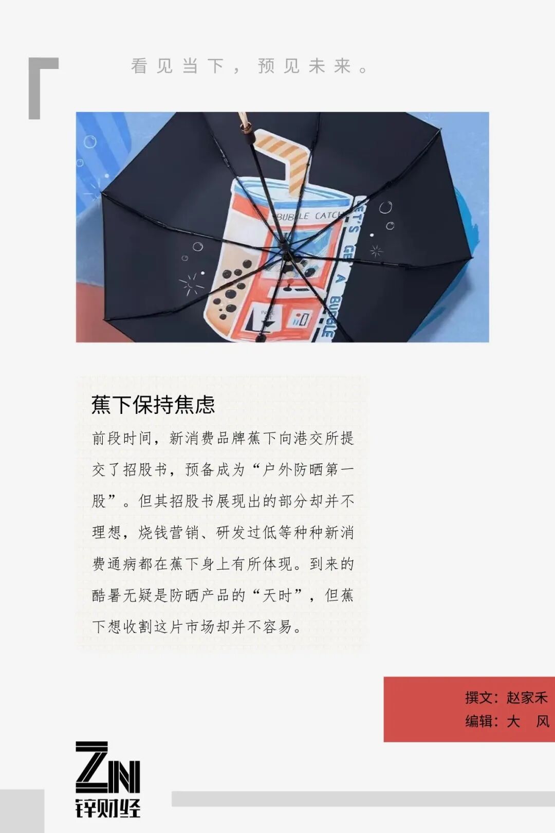 前段时间,新消费品牌蕉下向港交所提交了招股书,预备成为“户外防晒第一股”,至今还未有最新消息传出。