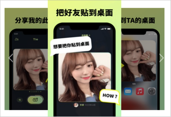 又比如春节后上线的社交产品贴贴,主打喜欢跟三五密友分享内容的00后群体。用户可以通过照片或视频的方式随手记录自己的日常生活,而这些内容会被自动推送到他们“贴贴”密友的桌面。让用户或朋友之间能够时刻分享真实的生活瞬间的贴贴,在功能和目标用户群体上与陌陌形成高度互补。