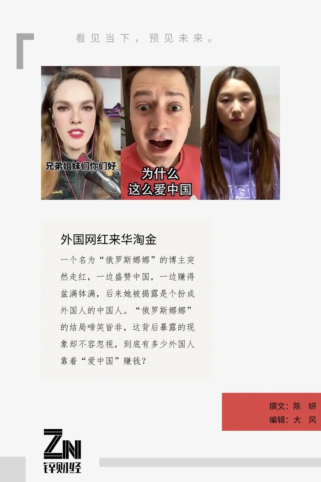 这样的场景并不少见,如今在各大平台上,经常能看到一群老外对着镜头表达“我爱中国”“我为国货点赞!”“我想回中国”等视频。这些内容经由互联网发酵,博得不少关注,让许多老外尝到流量红利。不过,随着入局者越来越多,网友的质疑声也越来越大,如此套路般的“爱中国”,是否已成为外国网红经久不衰的“财富密码”。