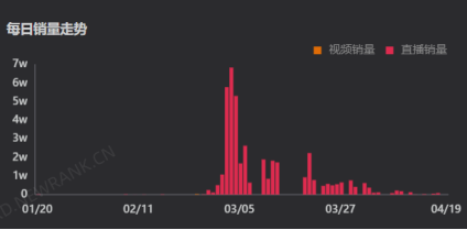 随着俄乌局势的热度降低,“青岛小菠萝”的带货数量与销售额均出现回落。他在4月20日的直播销售额为2.52万元,与峰值相比,营收下滑了98%。