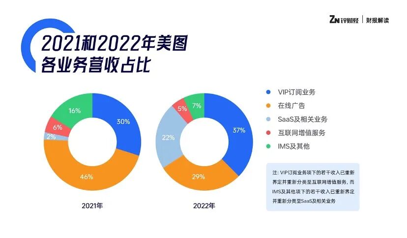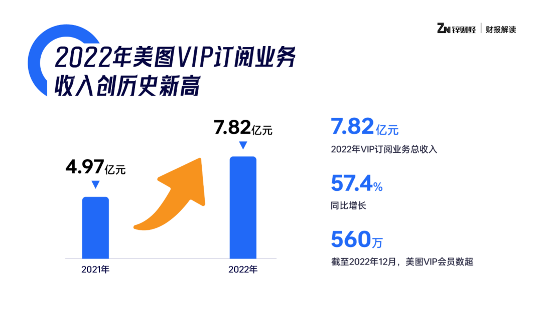 根据财报,美图最主要的收入有三部分,分别是VIP订阅业务、在线广告业务和SaaS及相关业务。数据显示,2022年,VIP订阅业务收入同比增长57.4%达人民币7.82亿元,快速成长为美图公司第一大收入来源。