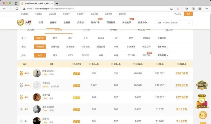B站上开通舰长198/元一个月,连续包月价格也要138元。真金白银的打赏金额比单纯粉丝、弹幕数量要更能体现主播的价值。根据二次元数据平台 vtbs.moe 抓取的数据,过去一年,B站用户针对虚拟偶像的订阅打赏比上年同期增长了350%。