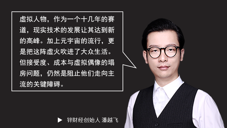 本身虚拟人物并不是一个新的话题,从第一个虚拟歌手“初音未来”于2007年出道算起,这个赛道也已经是一个15年的老行业了。只不过,后来随着AR、VR技术的成熟,二次元的虚拟人物开始变得更加立体、真实。